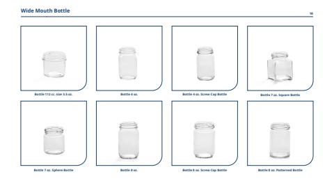 Bottle 112 cc. size 3.5 oz.Bottle 4 oz.Bottle 4 oz. Screw Cap BottleBottle 7 oz. Square BottleBottle 7 oz. Sphere BottleBottle 8 oz.Bottle 8 oz. Screw Cap Bottle Bottle 8 oz. Patterned BottleWide Mouth Bottle16